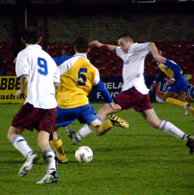 But the Hall hit that clincher three minutes later and again Barry was involved. He hit a terrific cross from the right corner flag. Burke's header was well blocked on the line by Dorney but the grounded keeper could do nothing as the Hall number nine cracked in the loose ball to make it 3-1.